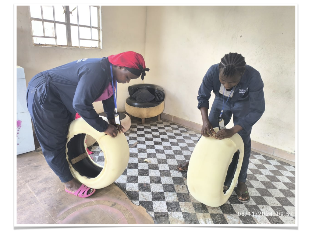 The car tire trash problem is a global issue with significant environmental, health, and safety consequences. Millions of discarded tires pile up across Sierra Leone, a country without a proper waste management system. Decomposing tires leach toxic chemicals and micro-plastics into the soil and groundwater, contaminating ecosystems. Vehicle tires are replaced on a regular basis, creating an ever increasing waste problem. At the FIL we PROcycle discarded tires into beautiful pieces of FURNItires. As sales increase, waste decreases.